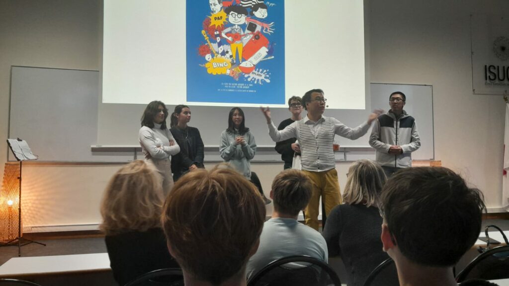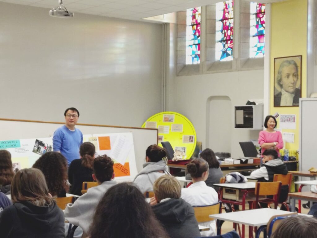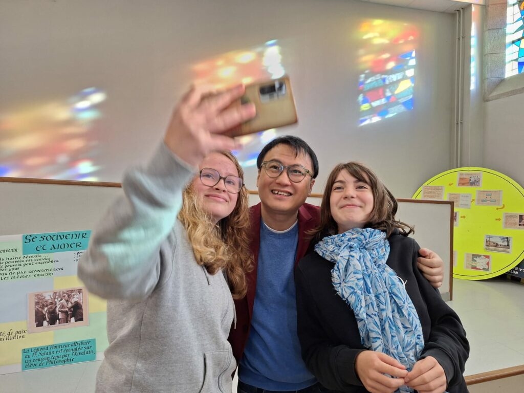Mercredi 24 septembre, à l’occasion d’une tournée en Bretagne qui commémore le 40ème anniversaire du jumelage entre la région Bretagne et la province du Shandong en Chine, Li Song nous a fait l’honneur d’un échange avec les élèves du collège Saint Yves. C’est avec beaucoup d’humour et de finesse que l’humoriste – qui a approfondi ses connaissances sur la langue française à Brest lors de ses études universitaires- a répondu aux questions des collégiens. Après quelques échanges de selfies et conseils pour l’apprentissage du chinois, c’est au tour des lycéens de profiter d’une représentation du nouveau spectacle de Li Song : “Chroniques d’un débri2” à l’EMBA. Ils ont ainsi pu découvrir l’immense talent de cet humoriste qui manie avec brio autodérision, jeux de mots et satire culturelle. Merci à Li Song pour cette belle leçon !